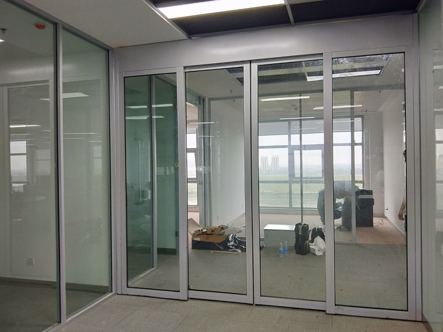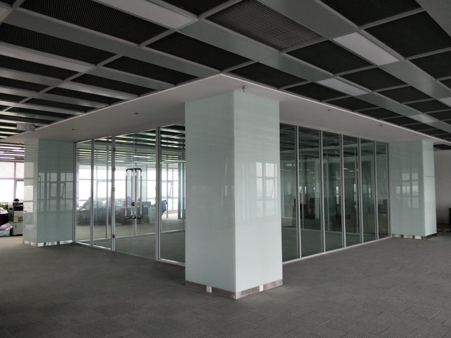 青島鼎信通訊股份有限公司產(chǎn)業(yè)園項(xiàng)目:HX-85款氟碳噴涂細(xì)銀色單層12mm鋼化玻璃隔斷,隔斷配套12mm鋼化玻璃門扇。7.8號(hào)公寓樓淋浴玻璃隔斷。