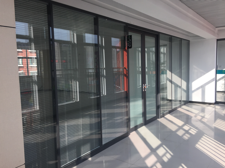 銀杏匯創(chuàng)客中心項(xiàng)目采用:HX-85款氟碳噴涂亞紋灰色,雙層6mm防火玻璃內(nèi)置百葉隔斷,隔斷配套單層防火玻璃有框門(mén)扇。