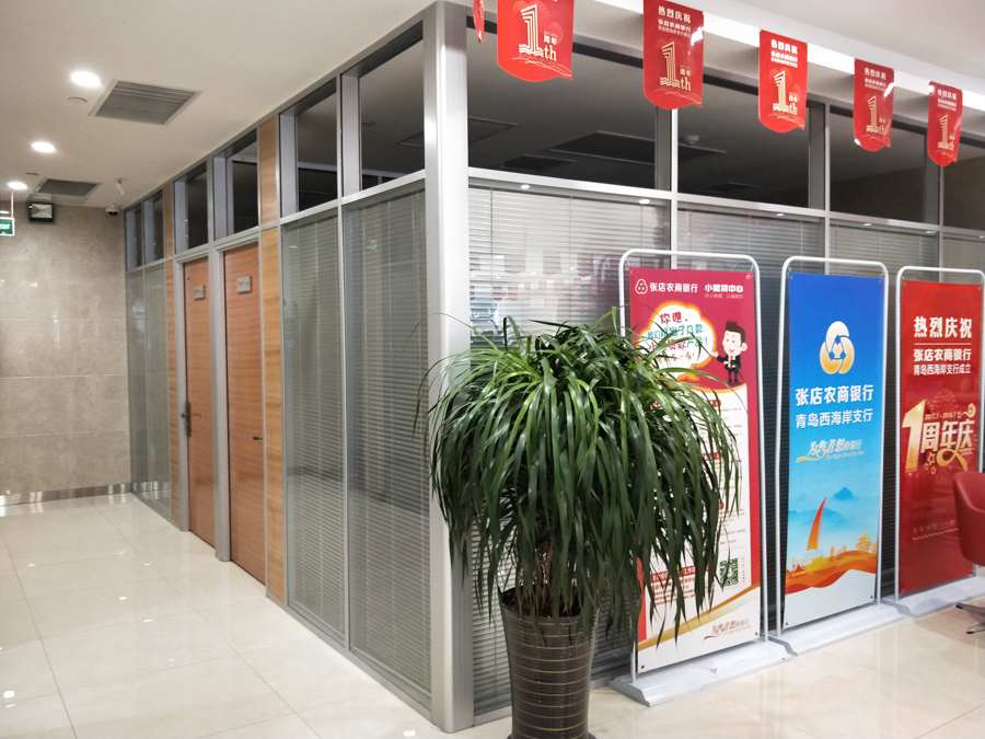 青島農(nóng)商銀行項(xiàng)目:HX-85款氟碳噴涂中古銅色單層10mm、雙層5mm鋼化玻璃隔斷,防彈旋轉(zhuǎn)門、自動門等,隔斷施工面積3000平方以上,先后為青島農(nóng)商銀行多個(gè)分支機(jī)構(gòu)提供服務(wù),并建立長期的合作關(guān)系。