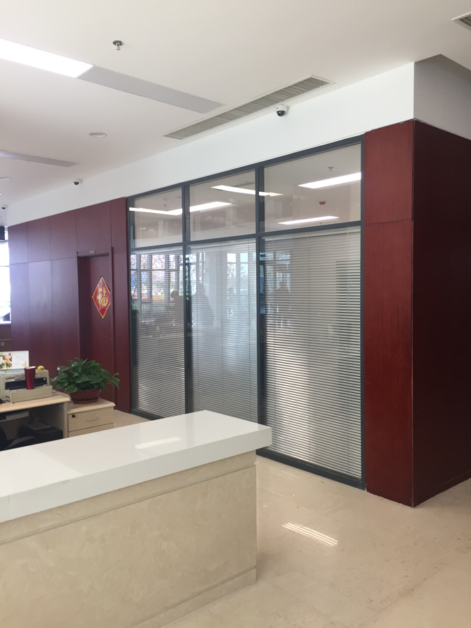 創(chuàng)智新區(qū)K樓市民中心項目:HX-85款靜電噴涂深灰色,雙層6mm鋼化玻璃內(nèi)置百葉隔斷,隔斷配套實木復(fù)合門扇。項目面積3200平方。