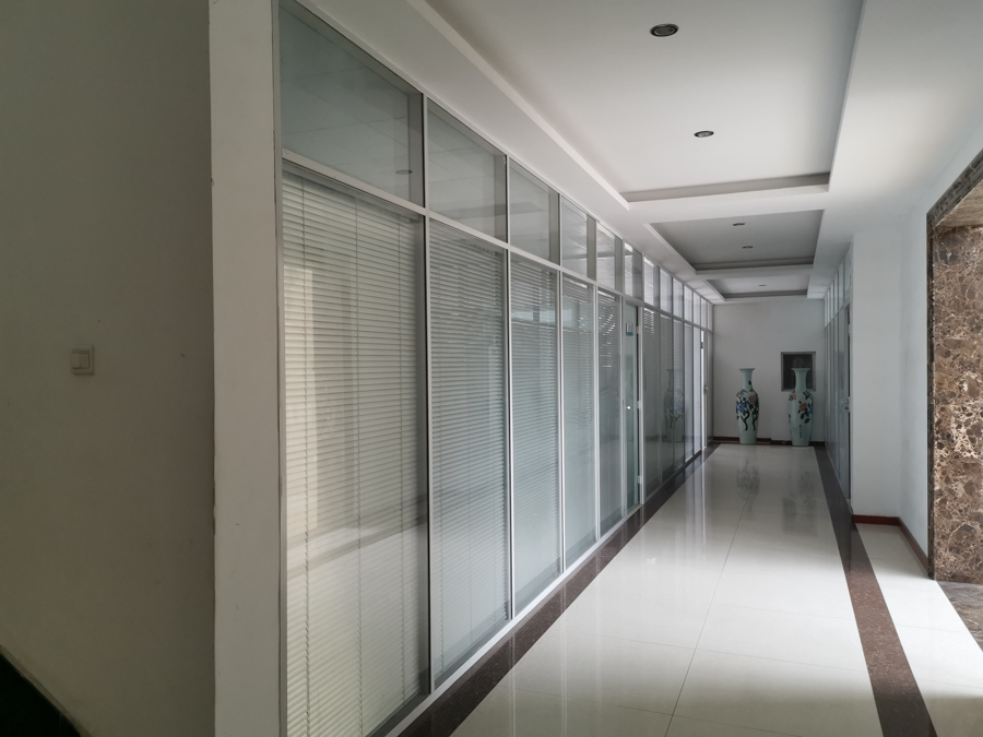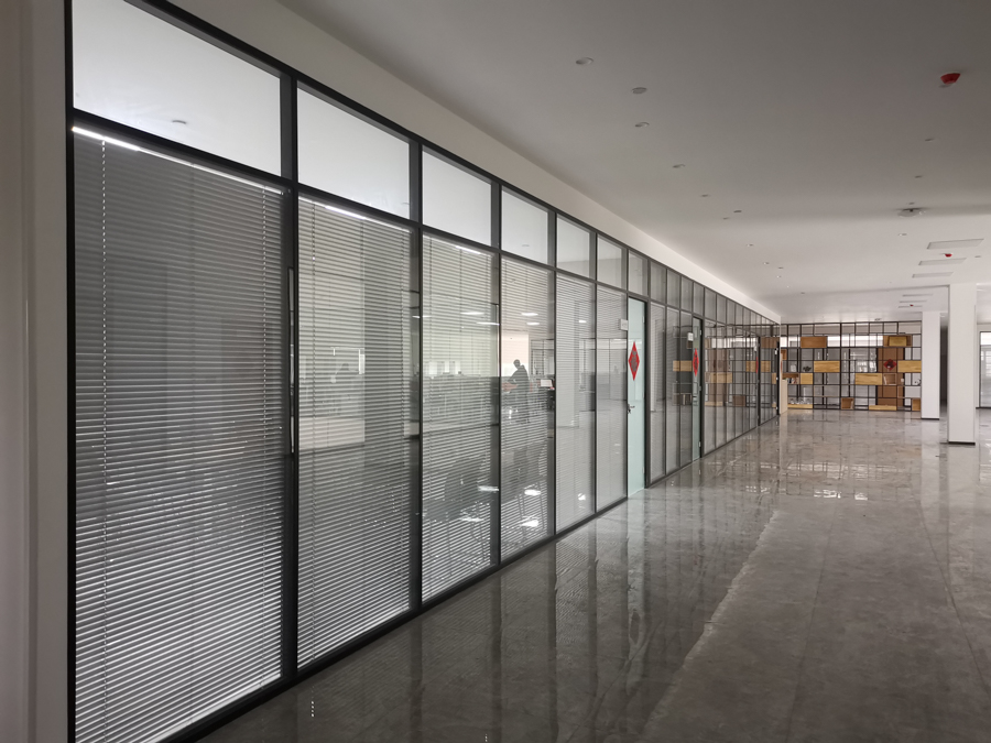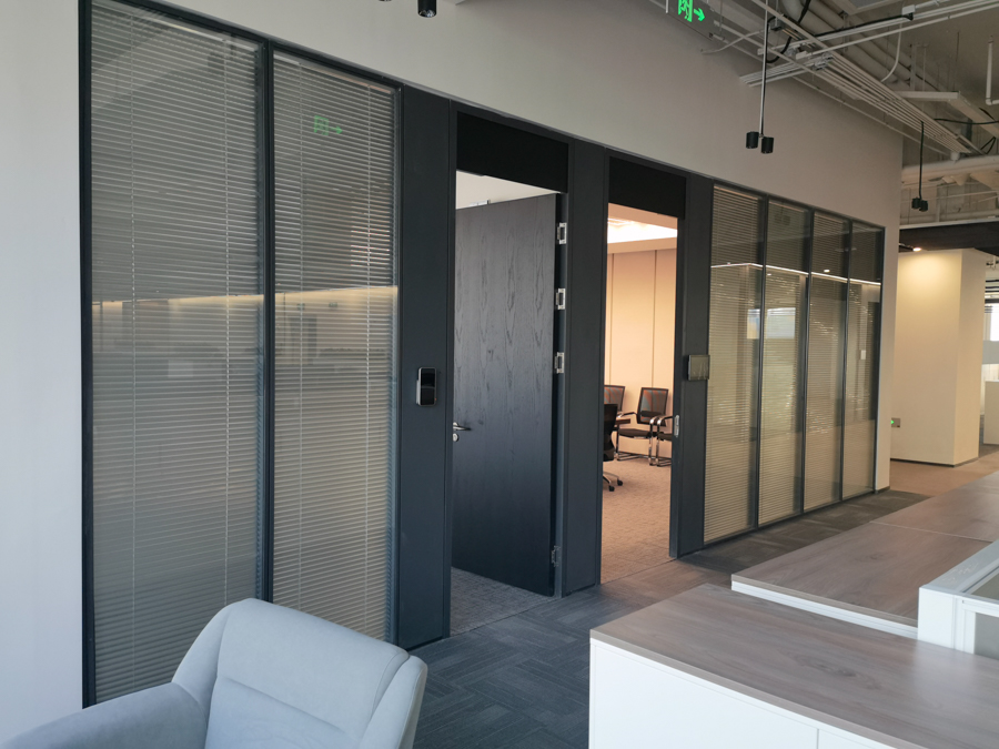 海爾全球中心項目:HX-85款氧化銀色單層10mm鋼化玻璃,隔斷配套10mm鋼化玻璃門扇。