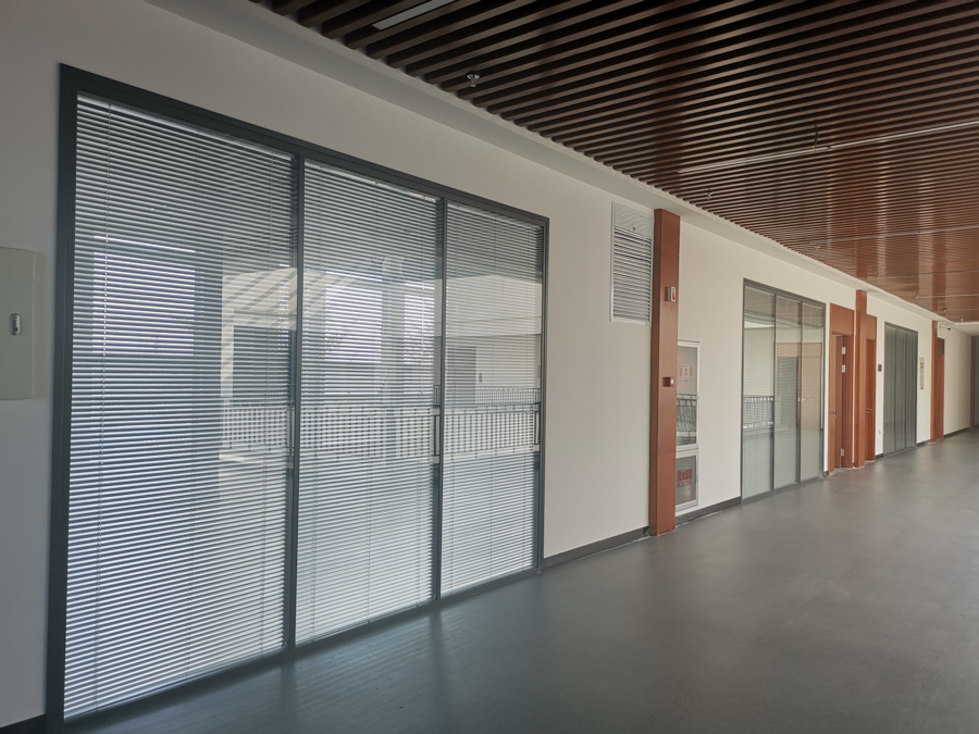 海爾云谷項目:HX-85款氟碳噴涂單層12mm鋼化玻璃,隔斷配套實木復合。電梯廳自動門系統(tǒng)采用松下全玻自動門及門禁系統(tǒng)。
